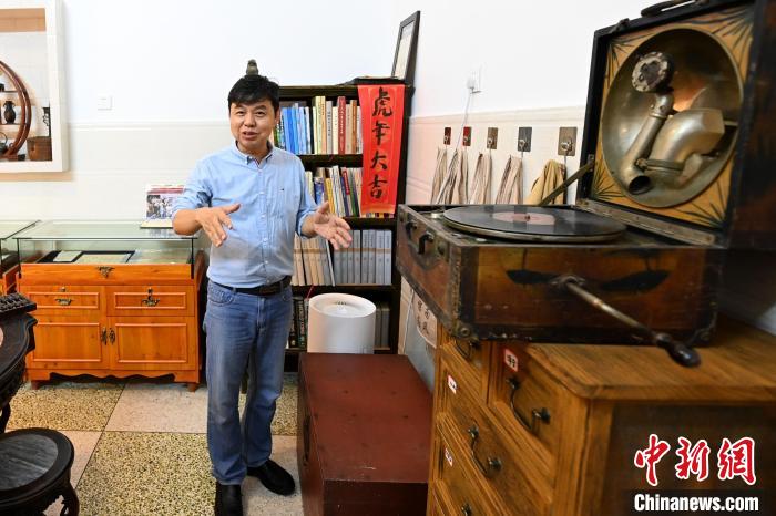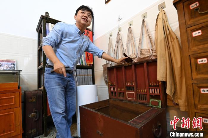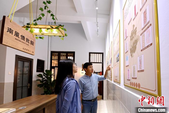在福建省漳州古城有一家公益性私人侨批展馆——南风侨批馆。该侨批馆占地不大,设有交流区、互动区和展示区三个区域。“侨批”是历史上海外华人华侨寄回祖地的银信,是记录侨乡文化、华侨生活的一个主要载体。据南风侨批馆创建者林南中介绍,他收集研究侨批20多年,馆内陈列着清末至上世纪90年代的侨批、货币以及从海外寄回国内的物件等。他表示,透过一封封侨批,可以领略闽南的特色文化,感受先人出番过洋打拼的历程,聆听“水客”及侨批信局诚信经营、助力华侨华人的故事。图为林南中(右)向参访者介绍侨批故事。