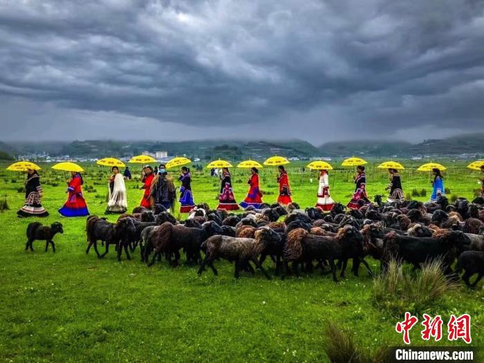 今年,是凉山彝族自治州成立70周年。近日,来自中国各地的30多名网友前往四川省凉山州参加“建州70年网红看凉山”系列活动之“彝区深处看变化”主题活动,深入昭觉、布拖、美姑、金阳、雷波5个县,历时10天,行程1800公里。通过普通网友、网红、博主、电商达人们的视角,展示凉山70年来的发展、建设成就。图为布拖县乐安湿地上演非遗文化朵洛荷。中新网