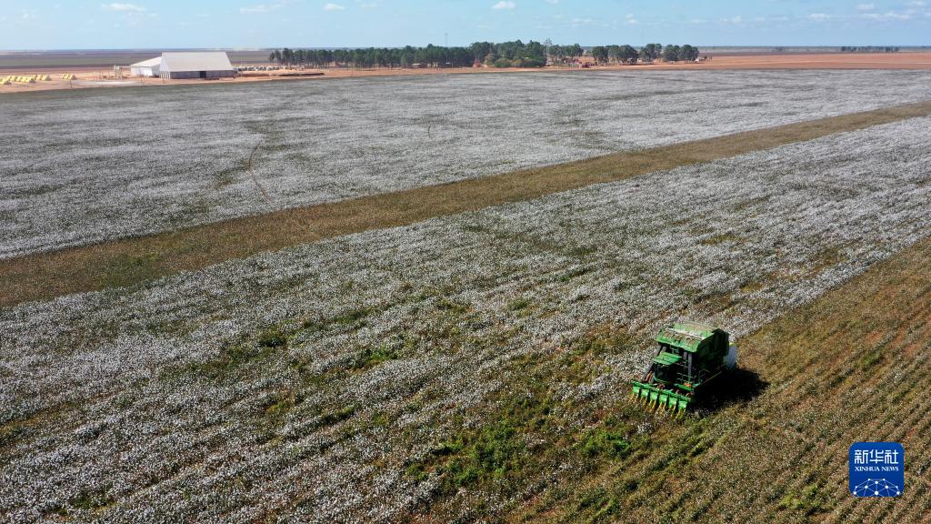 6月14日,采棉机在巴西巴伊亚州科科斯市圣科隆巴农场收割棉花。