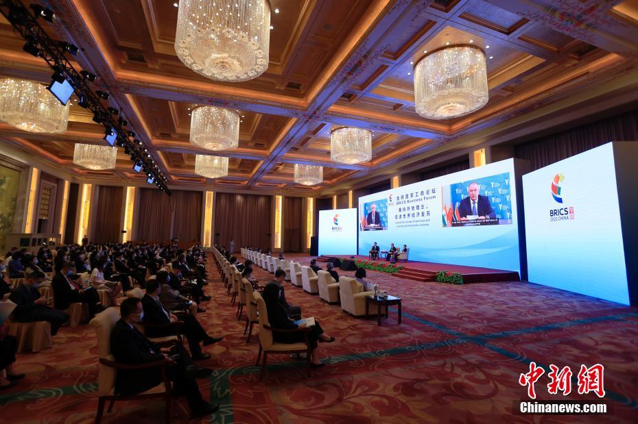6月22日,2022年金砖国家工商论坛举行“秉持开放理念,促进世界经济复苏”专题研讨。图为中国商务部副部长王受文(右二)发言。中新网
