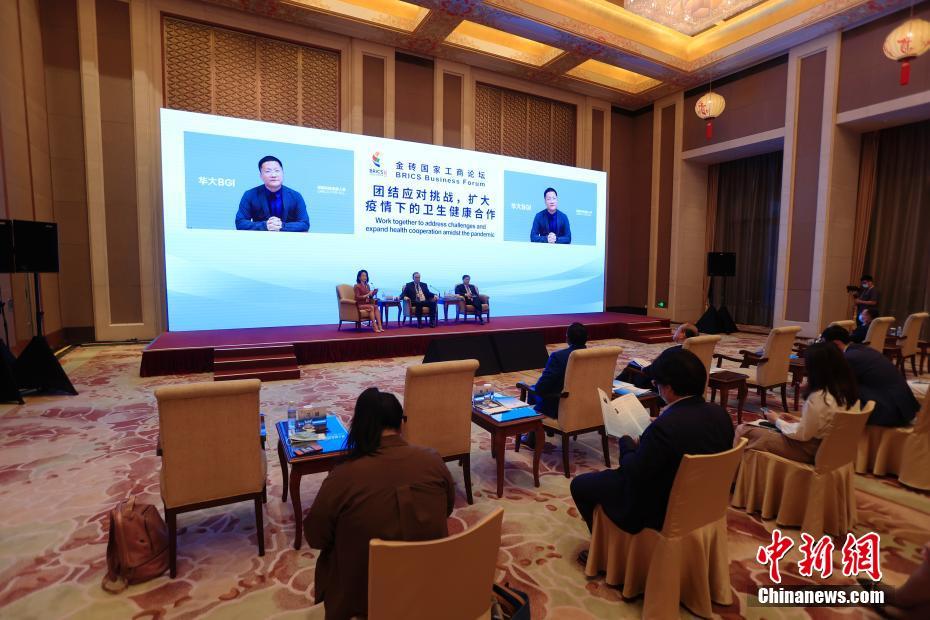 6月22日,2022年金砖国家工商论坛举行“团结应对挑战,扩大疫情下的卫生健康合作”专题研讨。图为华大集团首席执行官尹烨视频发言。中新网
