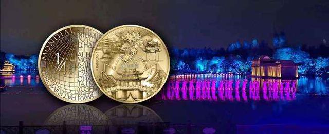 6月24日,《世界文化遗产“杭州西湖”纪念币》全球首发活动在印象西湖演出地正式举行。这枚“杭州西湖纪念币”将嵌入《印象西湖》珍藏册,加以《最忆是杭州》限量版邮票、西湖玉带桥钢笔画作品明信片。纪念币正面图案由杭州西湖核心景观三潭印月、曲院风荷、玉带晴虹、集贤亭以及杭州市花——桂花和中法双语“杭州西湖”字样、发行年份组成,背面刻印了联合国教科文组织标志、世界文化遗产铭文和地球仪,面值1/4欧元。浙江日报