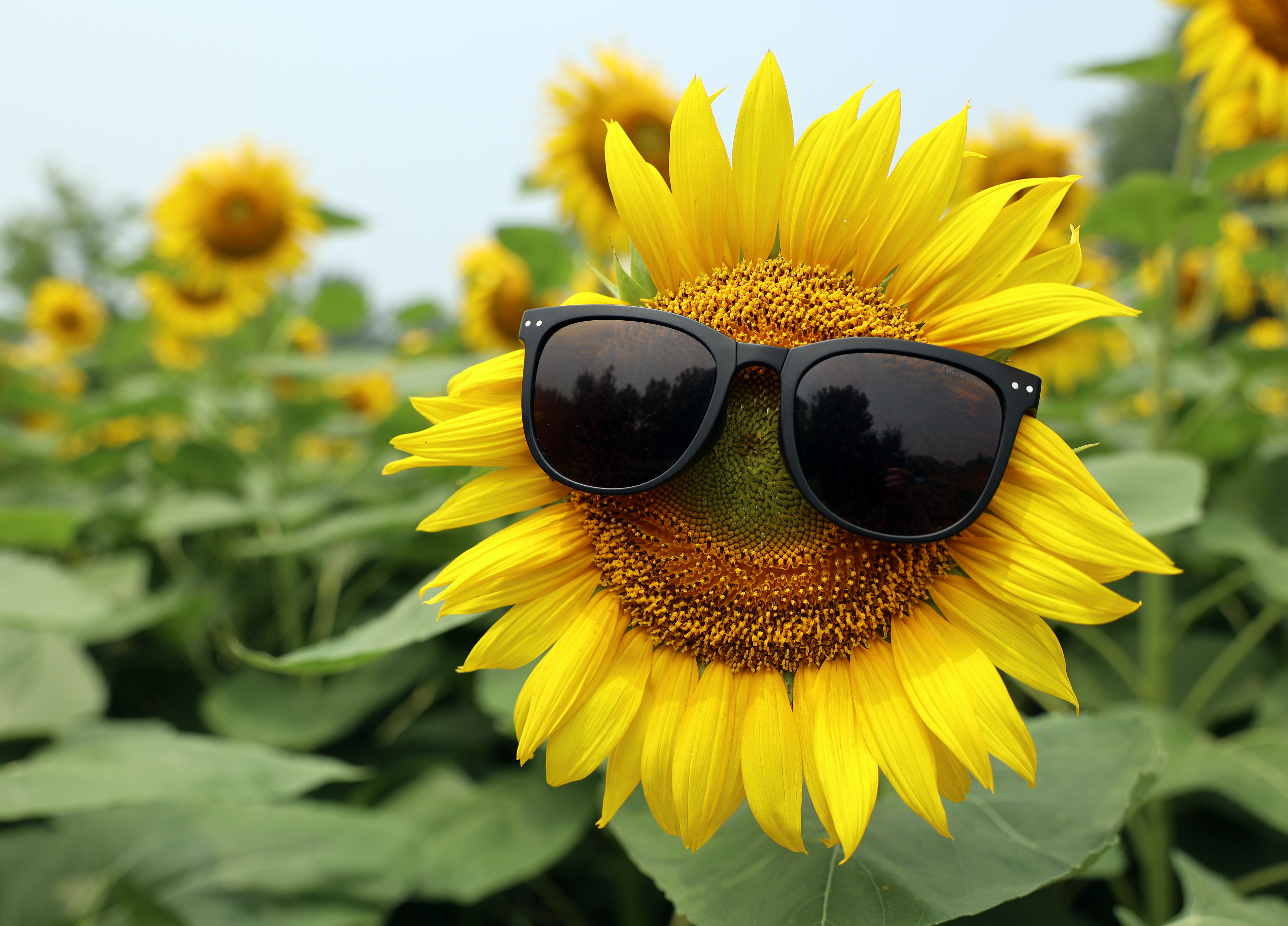 7月5日,一朵向日葵戴上了眼镜“遮阳”。 南美侨报网特约记者李久骏摄