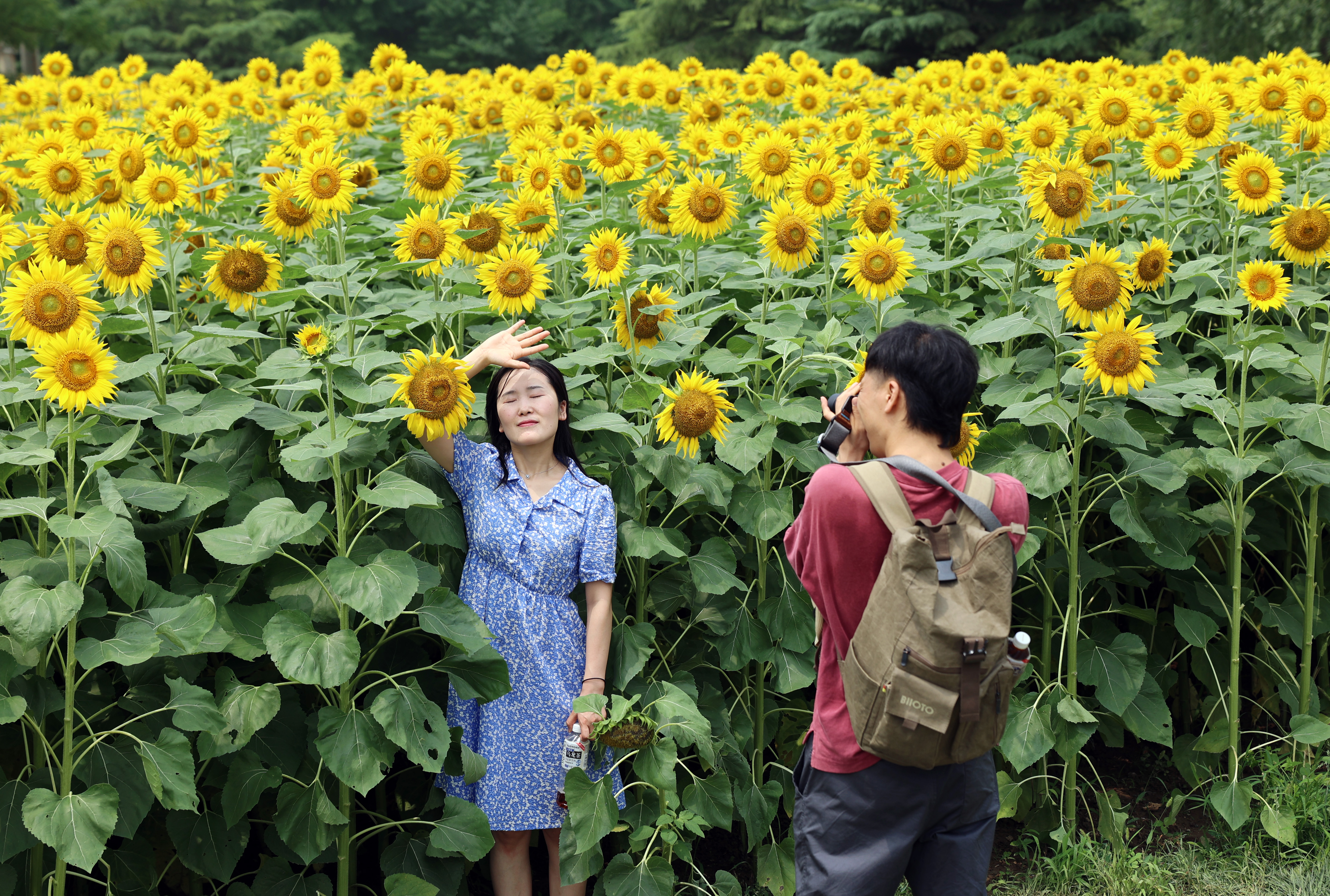 近日,“第十一届奥林匹克森林公园花卉观赏季——百亩葵花展”在北京奥林匹克森林公园北园“花田野趣”景区向游人免费开放,吸引众多游客前来打卡。