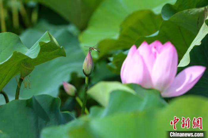 位于宁夏银川市兴庆区的鸣翠湖国家湿地公园荷花盛开。中新网