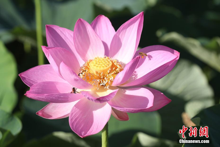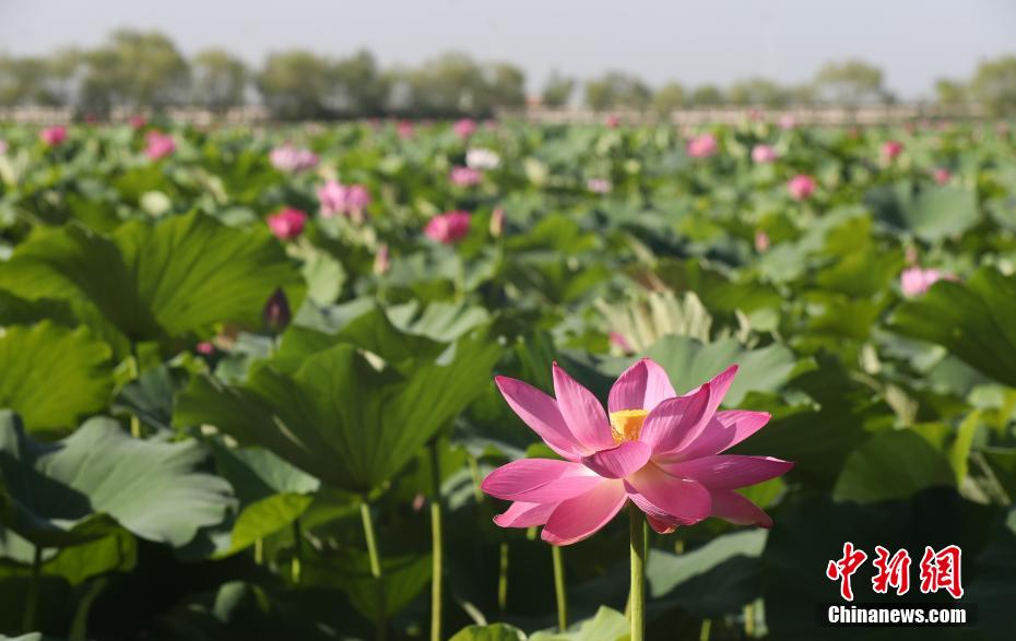 襄城区竞相绽放的荷花如繁星般镶嵌在绿色海洋中。中新网