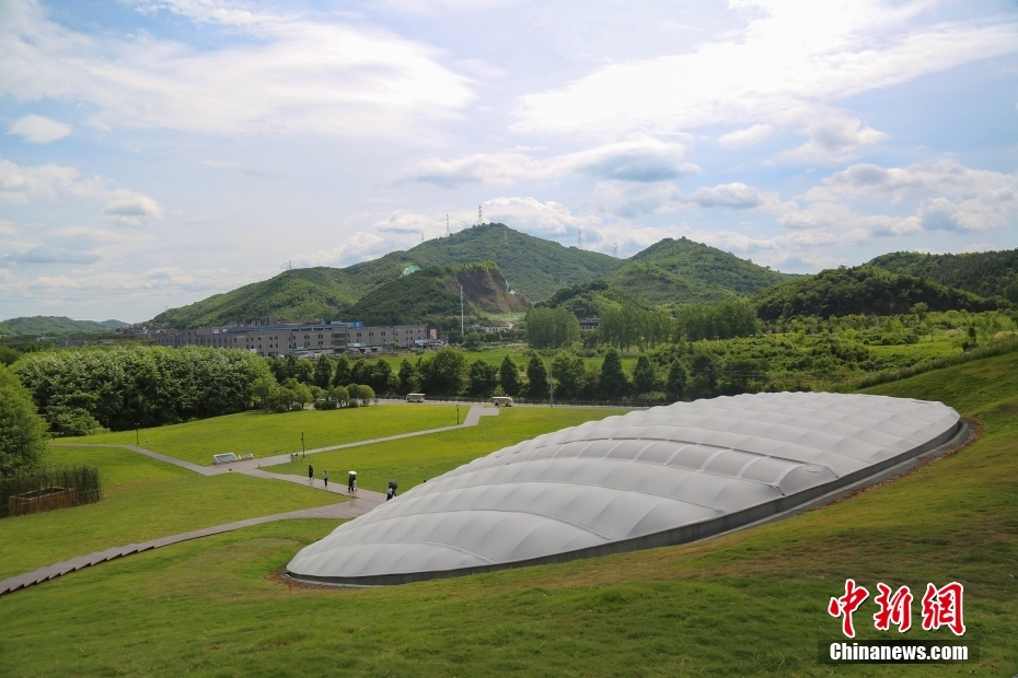 7月6日拍摄的良渚古城遗址老虎岭遗址公园(无人机照片)。新华网
