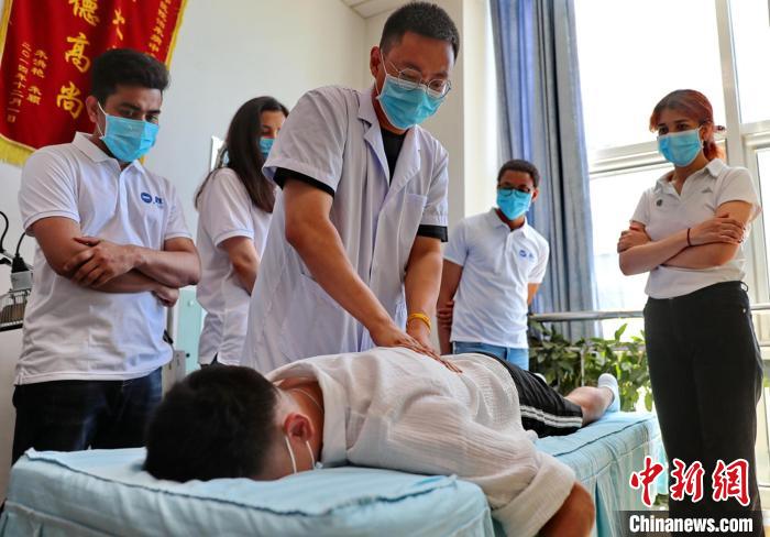 医务工作者为燕山大学外国留学生讲解推拿按摩知识。