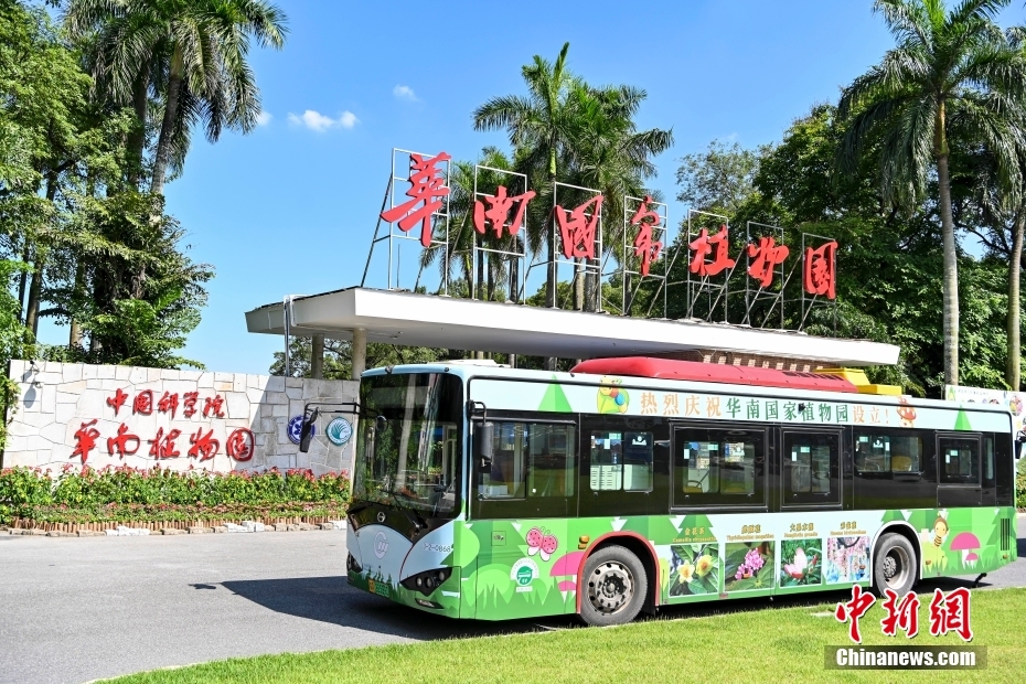 7月11日,“华南国家植物园”主题巴士停靠在华南国家植物园门前。 中新网