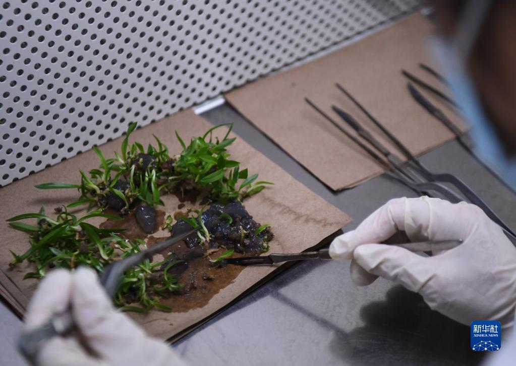 在华南国家植物园,工作人员对兜兰进行增殖处理(7月4日摄)。新华网