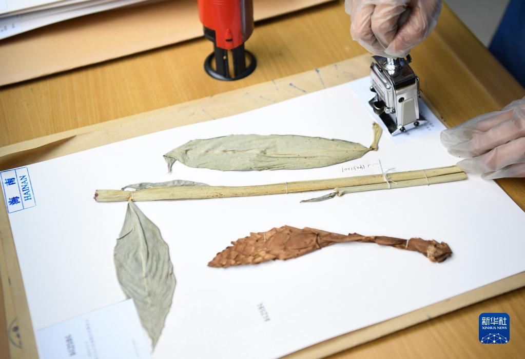 在华南国家植物园标本馆,工作人员对植物标本进行编号整理(7月4日摄)。新华网