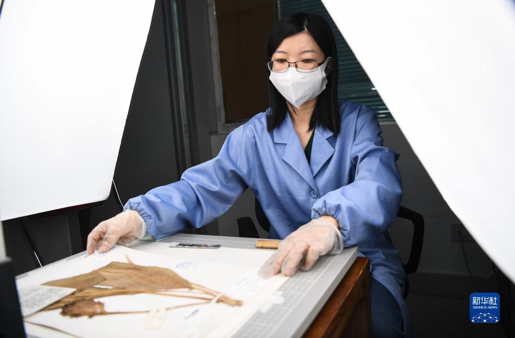 在华南国家植物园标本馆,工作人员给植物标本拍照存档(7月4日摄)。新华网