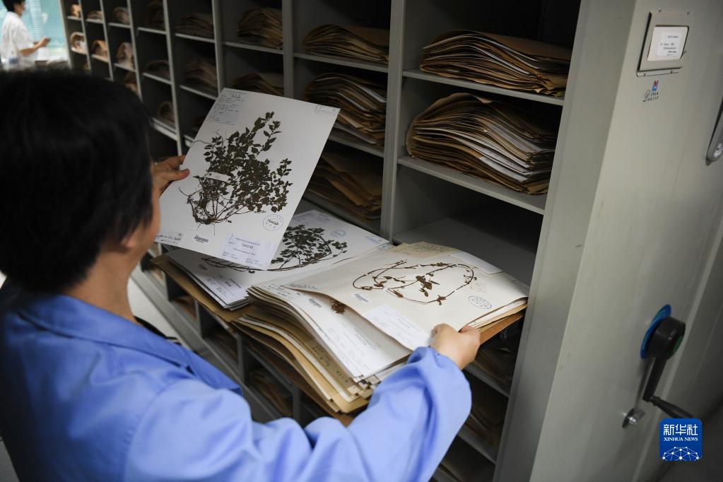 在华南国家植物园标本馆,工作人员整理植物标本(7月4日摄)。新华网