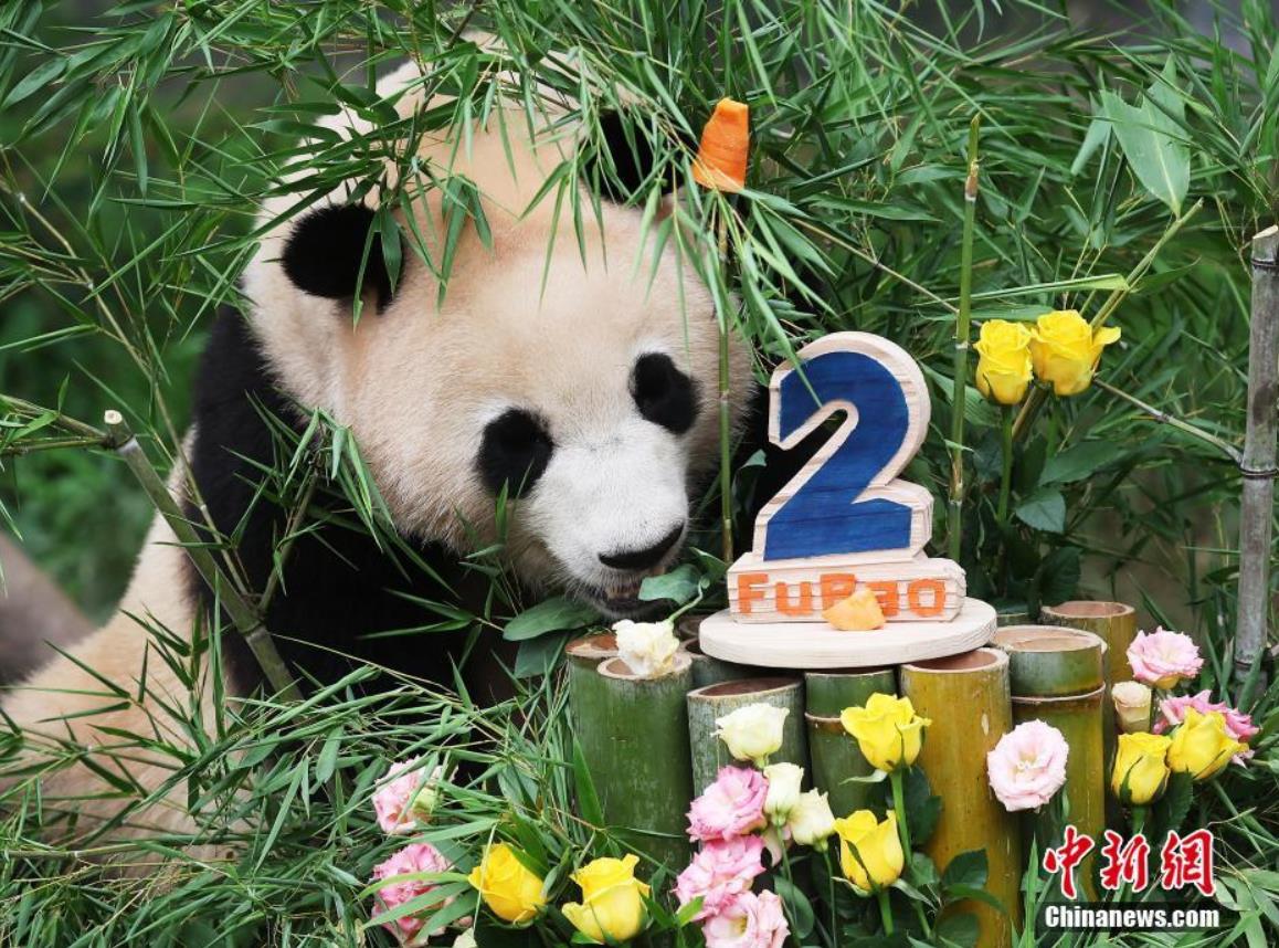 7月20日,韩国爱宝乐园为2岁大的熊猫“福宝”(雌性)准备了生日庆祝活动,福宝在户外吃竹子、啃胡萝卜,和妈妈一起度过生日。据悉,这是在韩国爱宝乐园出生的第一只中国熊猫宝宝。
