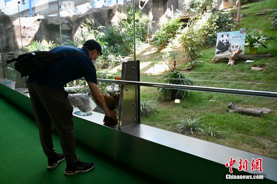据悉,“安安”健康状况在过去数星期慢慢转差,进食及活动量均大幅下降,身体变得非常虚弱。海洋公园一直与中国大熊猫保护研究中心专家就“安安”治疗方案及饲养管理保持密切沟通,制定相应方案,并根据“安安”病情发展及时调整方案,但其健康状况近日仍急剧恶化,最终于21日上午离世。图为香港市民到馆内悼念大熊猫安安。中新网