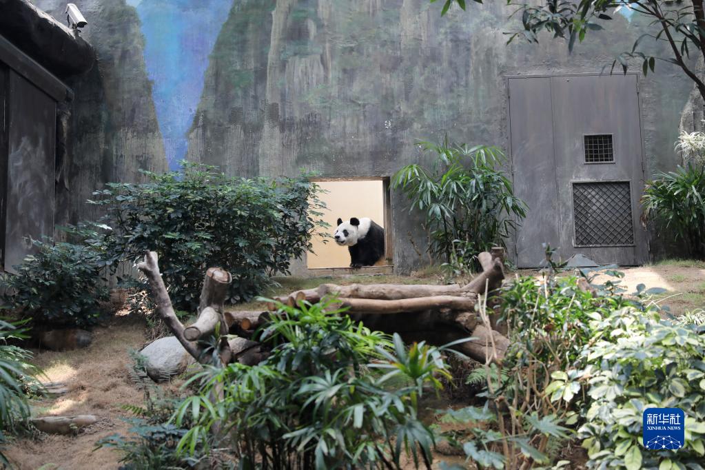 大熊猫“安安”来到香港海洋公园展区(2020年5月11日摄)。新华网