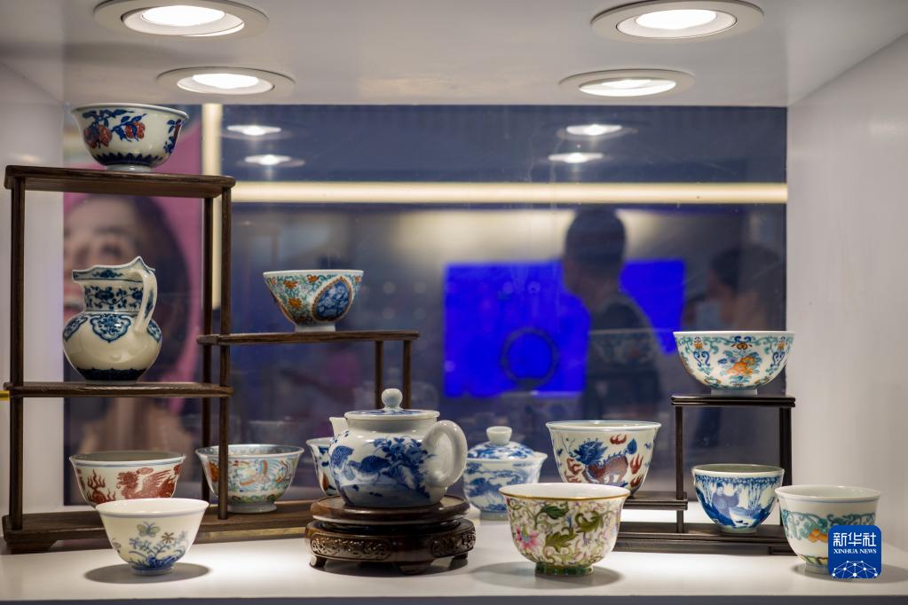 在海南举办的第二届中国国际消费品博览会上,国货精品馆达5000平方米,有1200多个国内品牌亮相。一些国货品牌开辟差异化“新赛道”,融合功能与审美,通过科技赋能升级产品,展示了“中国制造”到“中国智造”的转变。图为7月29日在消博会江西省展台拍摄的瓷器。