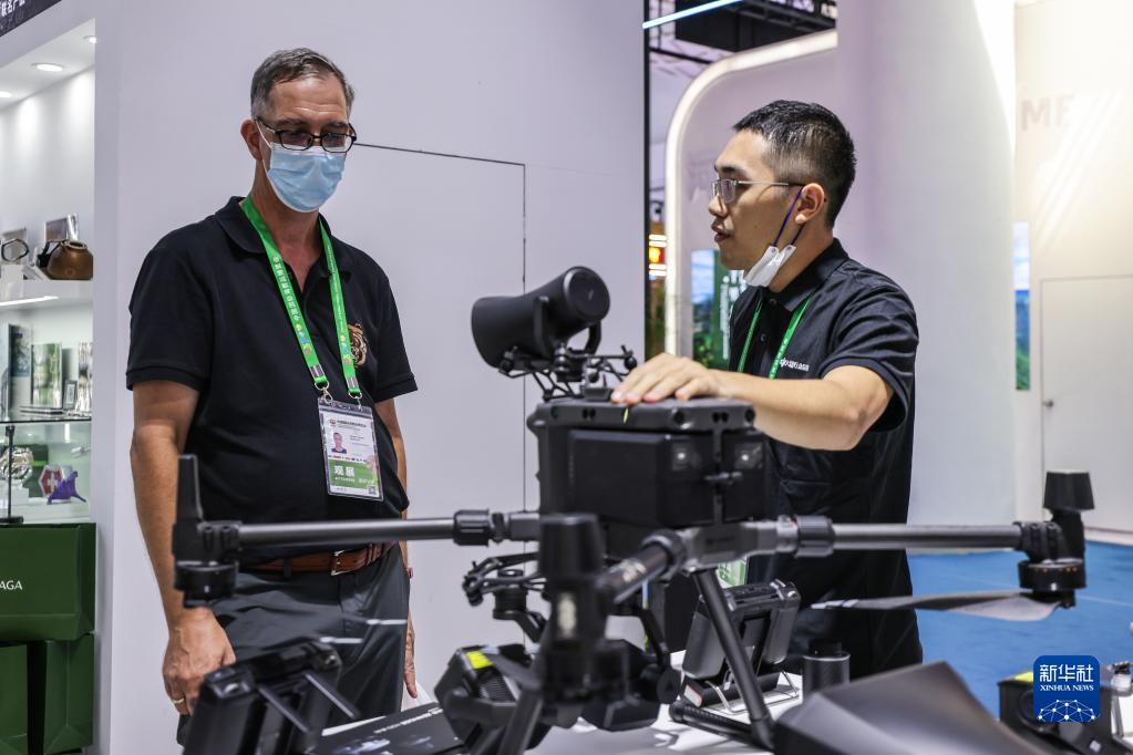 在海南举办的第二届中国国际消费品博览会上,国货精品馆达5000平方米,有1200多个国内品牌亮相。一些国货品牌开辟差异化“新赛道”,融合功能与审美,通过科技赋能升级产品,展示了“中国制造”到“中国智造”的转变。图为7月26日,参展商在消博会上向观众介绍无人机产品。