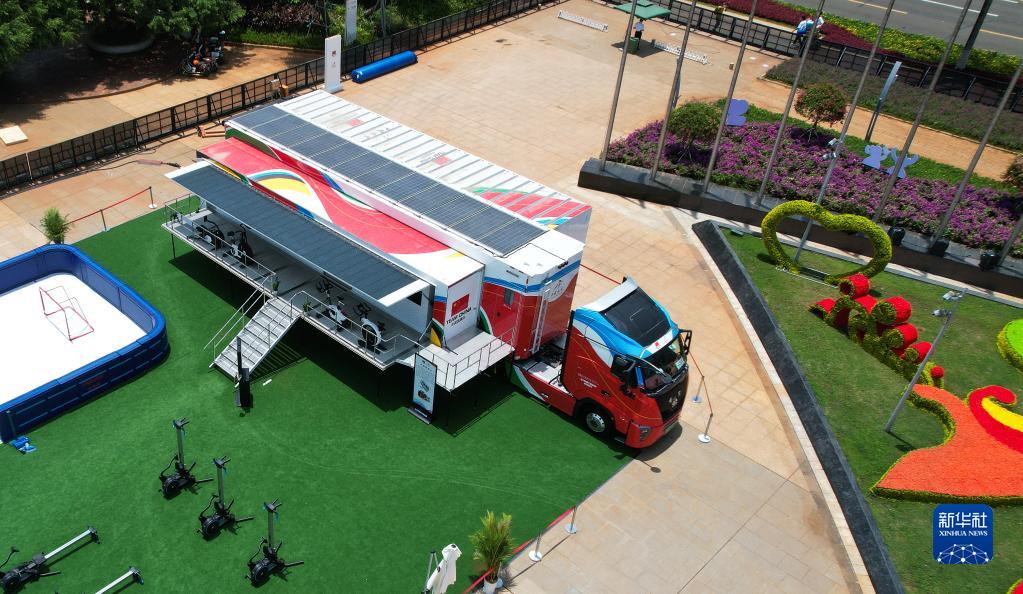 在海南举办的第二届中国国际消费品博览会上,国货精品馆达5000平方米,有1200多个国内品牌亮相。一些国货品牌开辟差异化“新赛道”,融合功能与审美,通过科技赋能升级产品,展示了“中国制造”到“中国智造”的转变。这是7月29日在消博会上拍摄的中国雪蜡车(无人机照片)。