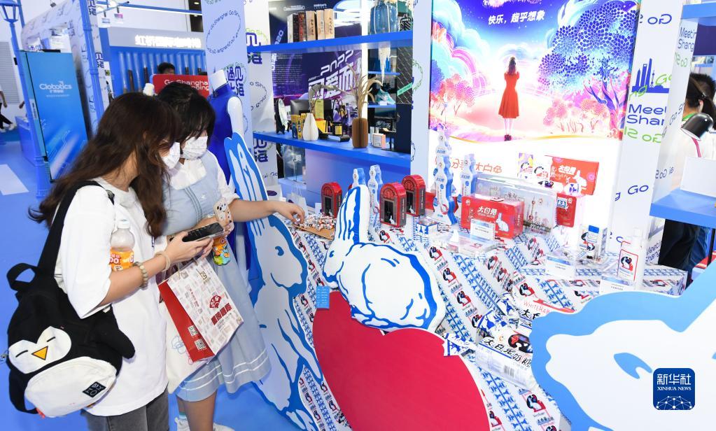 在海南举办的第二届中国国际消费品博览会上,国货精品馆达5000平方米,有1200多个国内品牌亮相。一些国货品牌开辟差异化“新赛道”,融合功能与审美,通过科技赋能升级产品,展示了“中国制造”到“中国智造”的转变。图为7月28日,观众在消博会上挑选大白兔奶糖。