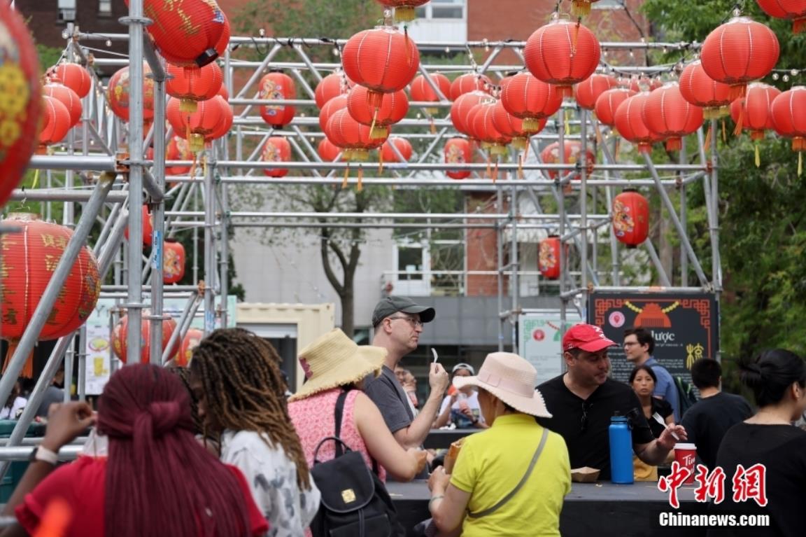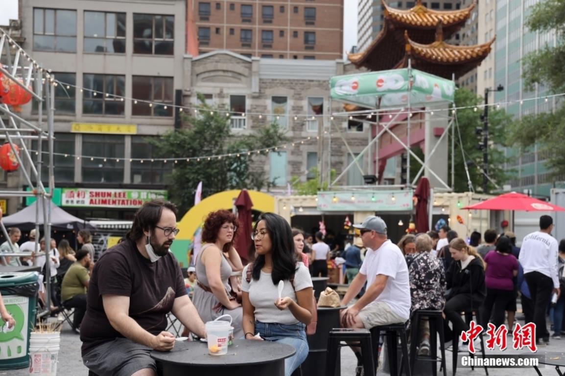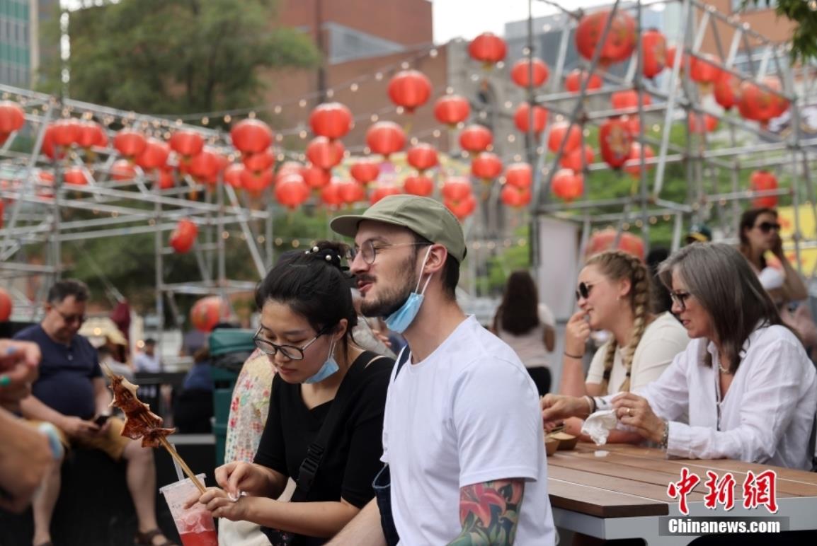 当地时间7月30日,加拿大蒙特利尔,在唐人街举行的亚洲美食集市吸引食客光顾。