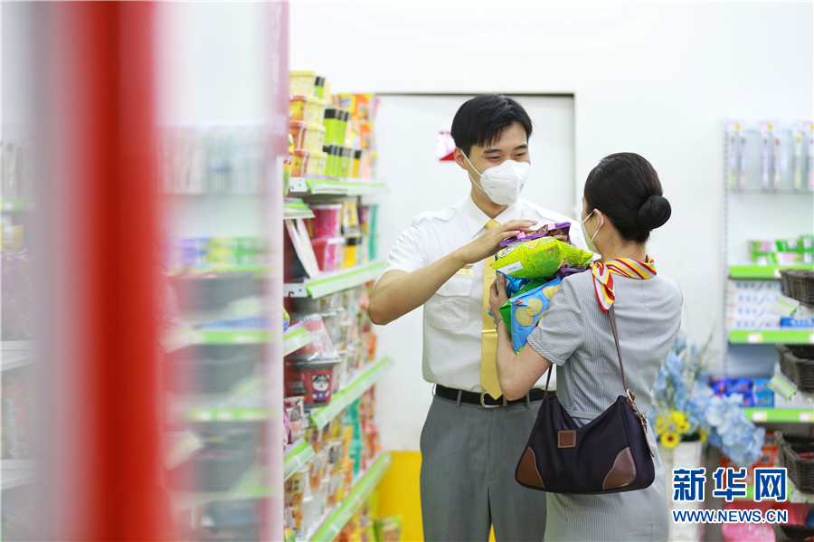 李豆豆和乔玲子在超市采购零食。新华网