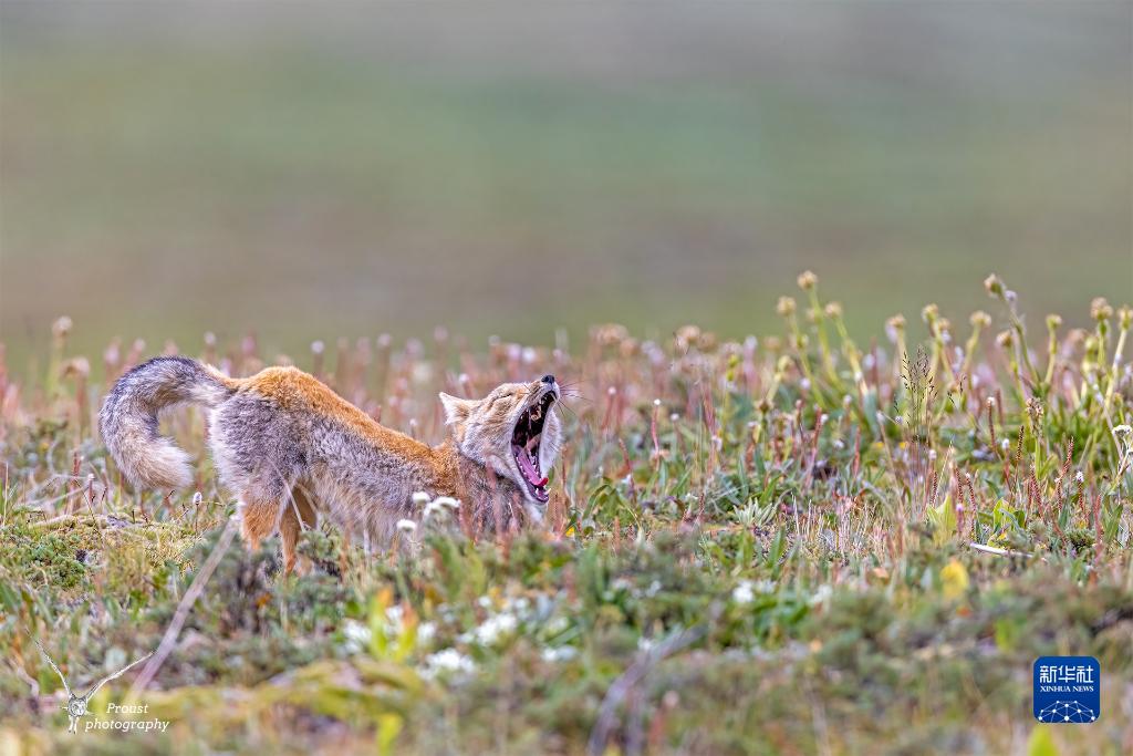 在昂赛大峡谷内拍摄的藏狐(8月6日摄)。新华网
