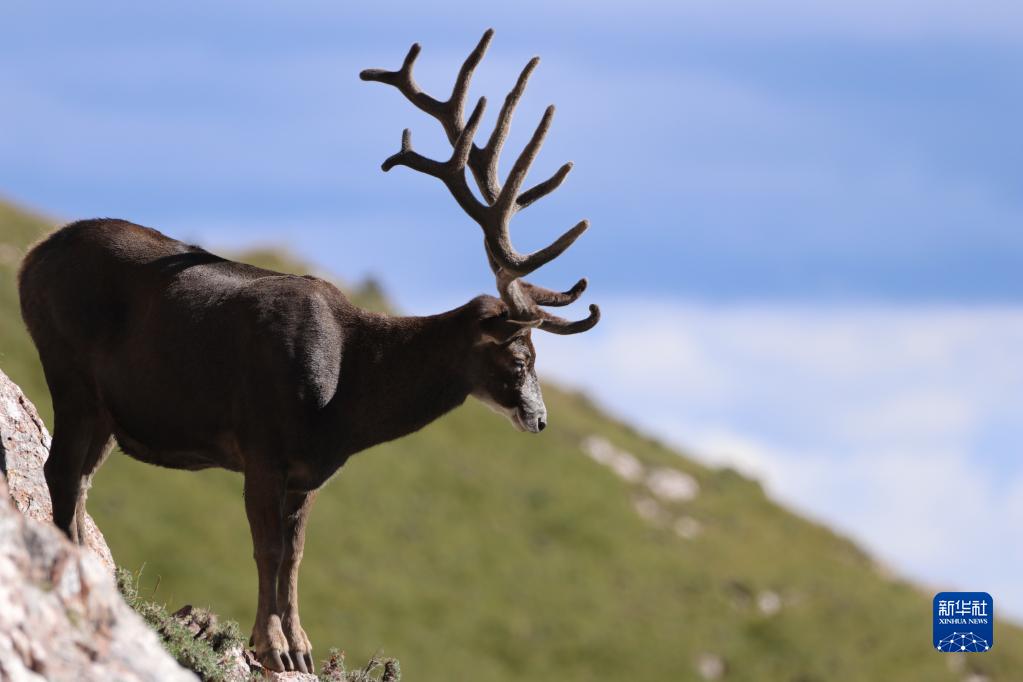 在昂赛大峡谷内拍摄的白唇鹿(8月5日摄)。新华网