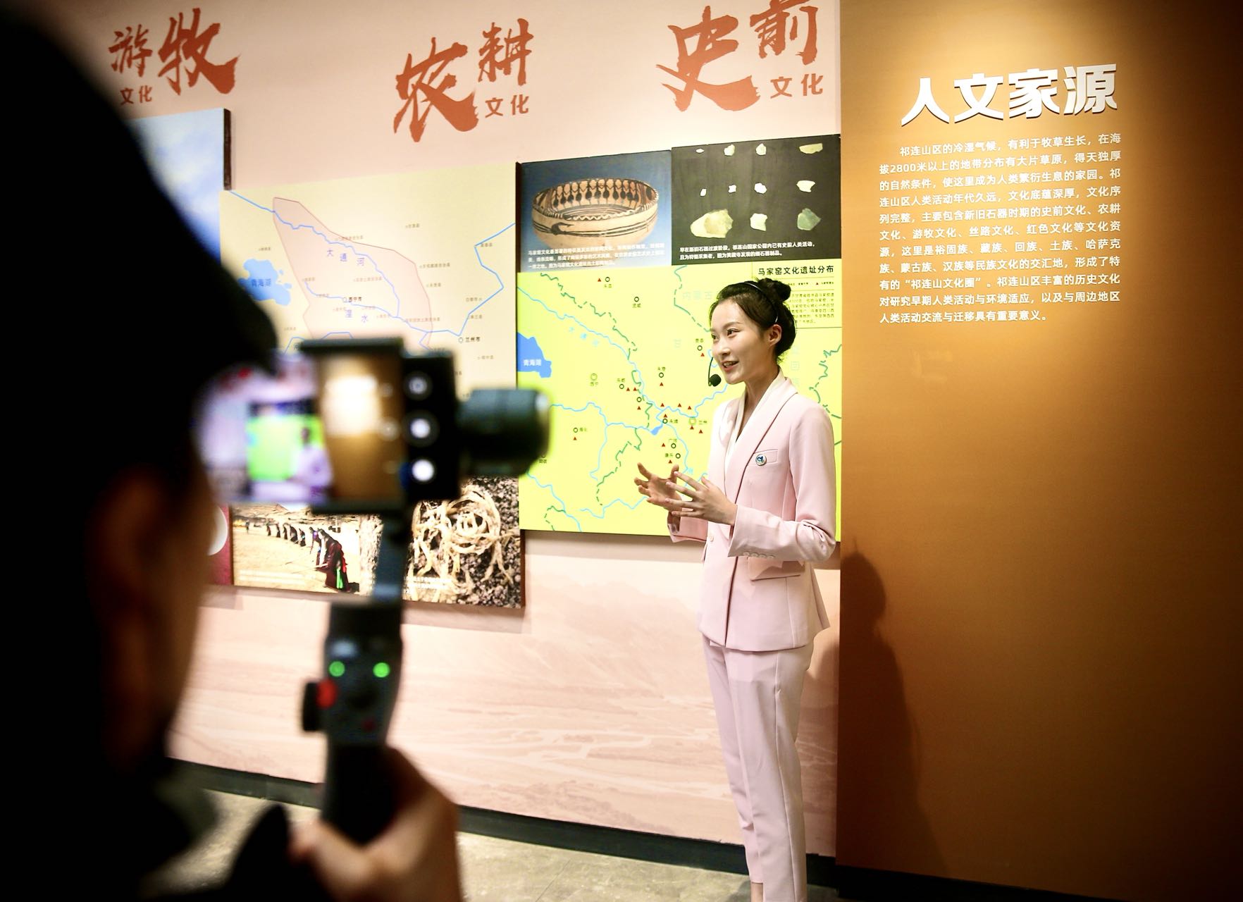 近日,“青海这十年”中外媒体联合采访团走进中国的祁连山国家公园,寻访高原上的生态博物馆。图为8月7日,讲解员介绍展馆内容。南美侨报网特约记者陈慧摄