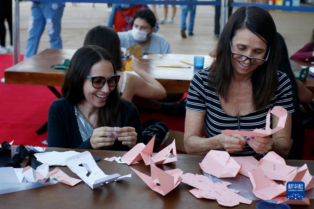 8月13日,在巴西首都巴西利亚举办的“中国一瞬”文化体验周活动上,人们参加折纸体验活动。