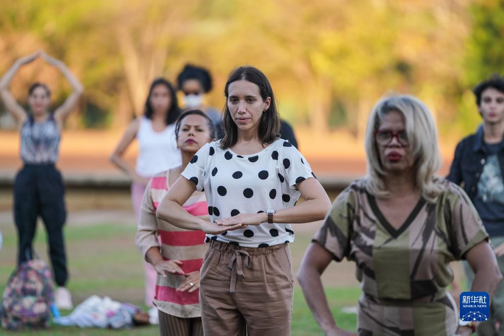 8月13日,在巴西首都巴西利亚举办的“中国一瞬”文化体验周活动上,人们参加太极拳体验活动。