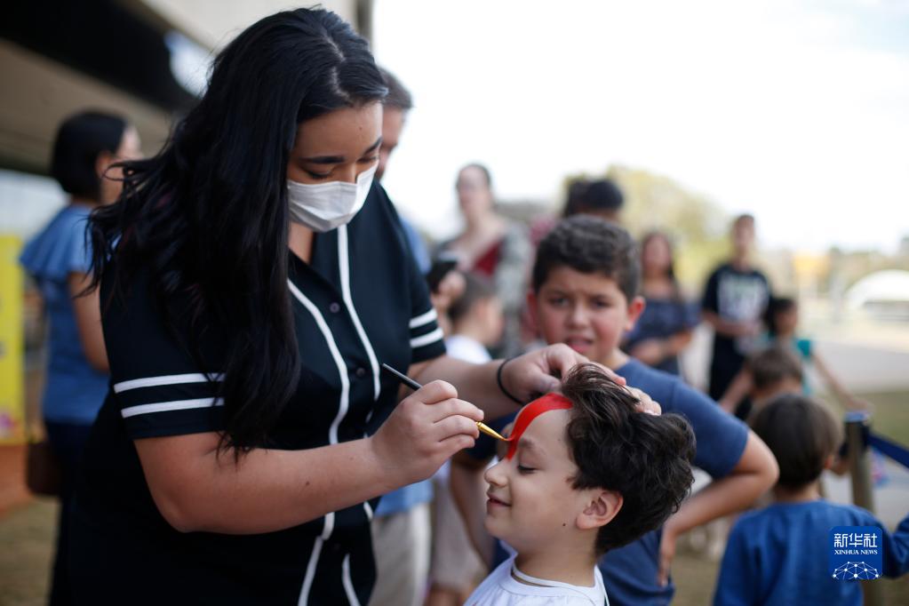 8月13日,在巴西首都巴西利亚举办的“中国一瞬”文化体验周活动上,一名男孩体验面部彩绘。