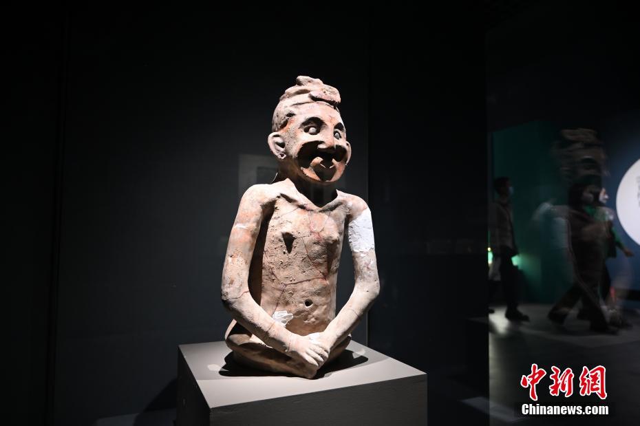 8月25日,内蒙古呼和浩特市,新石器时代红陶人像(复制品)在展览中展出。中新网