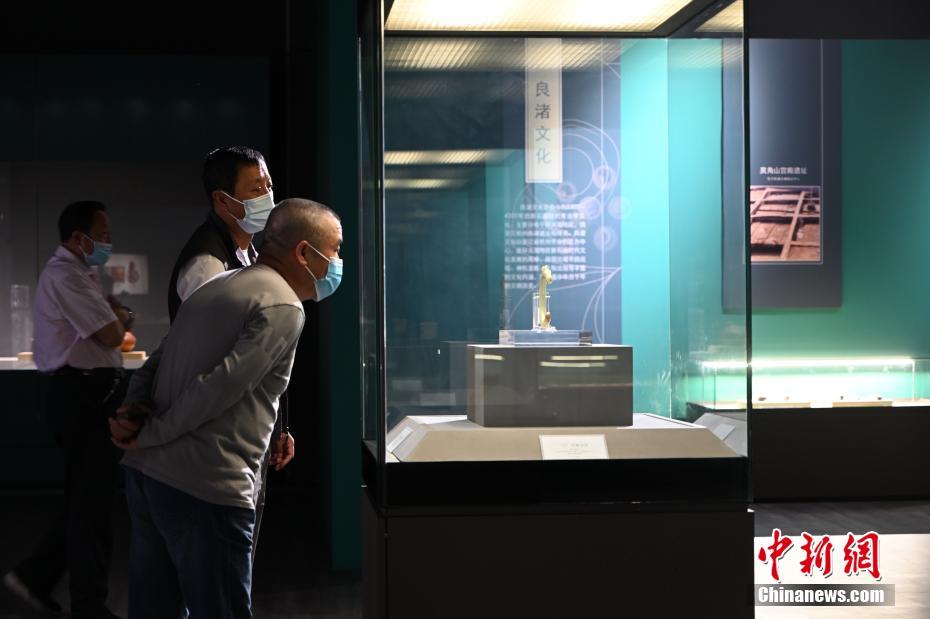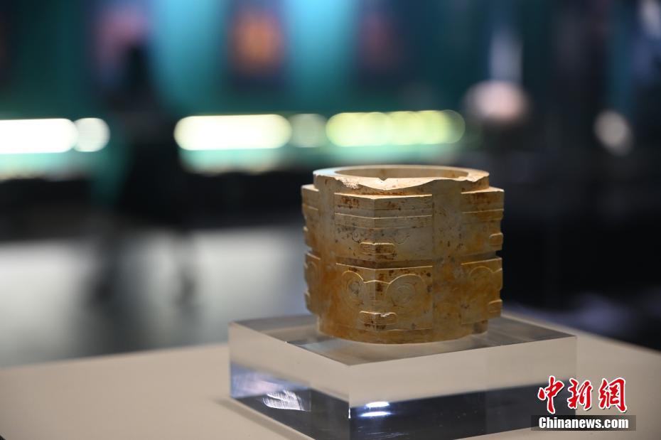 出土于浙江省杭州市余杭区瑶山遗址的新石器时代兽面纹玉琮在展览中展出。中新网