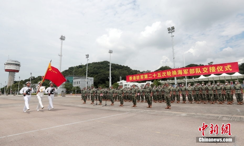 8月29日,根据《中华人民共和国香港特别行政区驻军法》规定和中央军委命令,中国人民解放军驻香港部队陆海空三军部分建制单位、装备进行第25次轮换。图为海军部队交接仪式。中新网