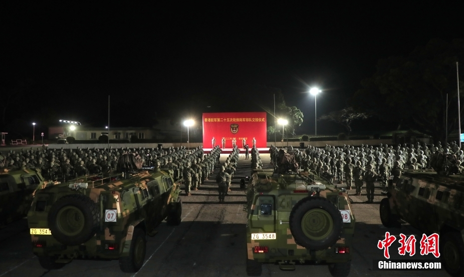 参加轮换的陆军部队抵达新田军营,凌晨举行防务交接仪式。 中新网