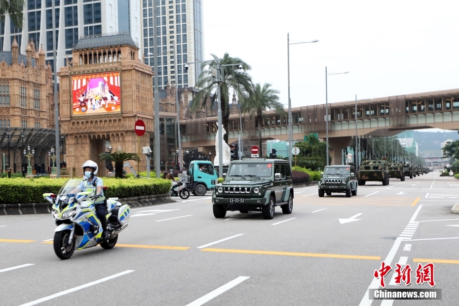 8月29日,中国人民解放军驻澳门部队顺利完成进驻澳门以来第23次建制单位轮换。同日,中国人民解放军驻香港部队陆海空三军部分建制单位、装备进行第25次轮换。图为轮换车队行驶在澳门街区。 中新网