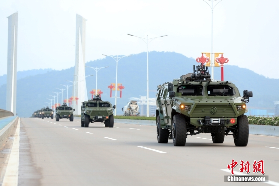 轮换进澳的官兵进驻前进行了认真训练和学习,系统掌握了军事技能、澳门基本情况和有关法律知识,具备履行澳门防务的能力素质。图为人员车辆经过横琴大桥。 中新网