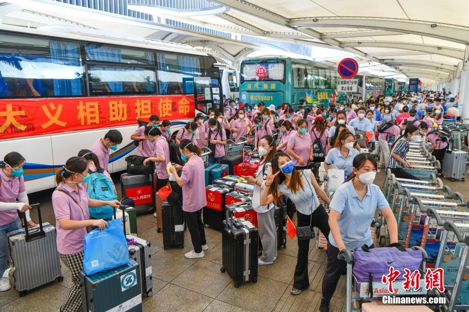 8月29日,多个援琼医疗队陆续抵达海口美兰国际机场。 中新网