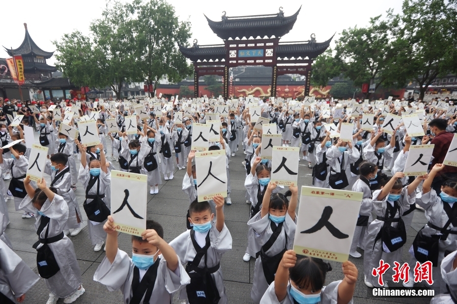 9月1日,中国各地幼儿升入小学,将开启学习新阶段。作为中国传统仪式,“开笔破蒙”成为很多学校为孩子们的准备入学仪式首选。8月31日,南京夫子庙小学的一年级新生来到夫子庙大成殿前举行开笔礼,孩子们行古礼、点朱砂、聆听师长寄语,在传承传统文化的仪式中开启人生“第一课”。图为孩子们在“开笔礼”仪式上展示“人”字。中新网