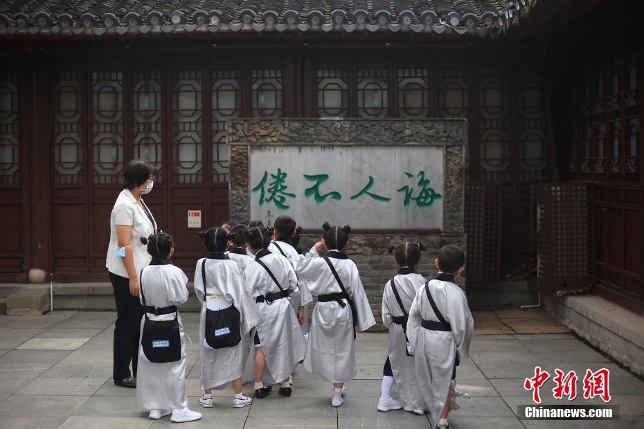 南京夫子庙小学的孩子们参观夫子庙。中新网