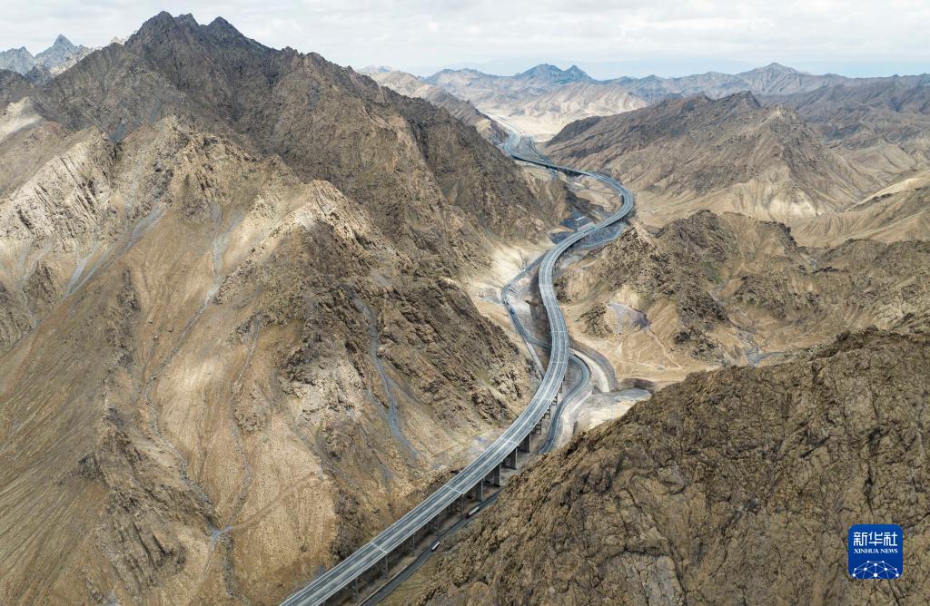 依若公路全线处于中国四大无人区中的两大无人区之中——阿尔金山无人区和罗布泊无人区,山区海拔2600米至3600米,气温最高达35摄氏度,极端低温可达-20摄氏度以下,全年降雨量仅为20至50毫米。图为依若高速公路蜿蜒穿越新疆若羌县山区(5月9日摄,无人机照片)。新华网