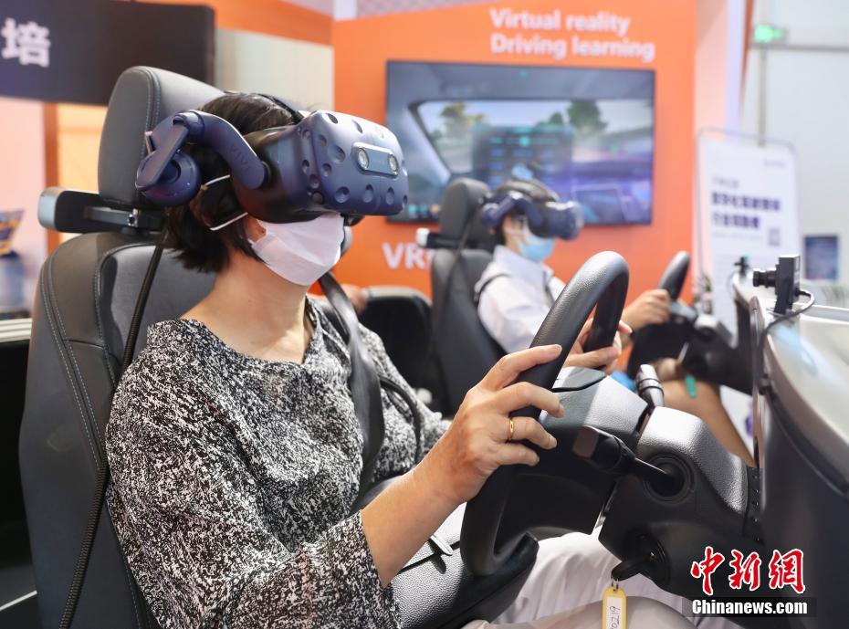 9月5日,在首钢园展区,观众在体验VR(虚拟现实)智慧驾培。当日,2022年中国国际服务贸易交易会在京闭幕。中新网