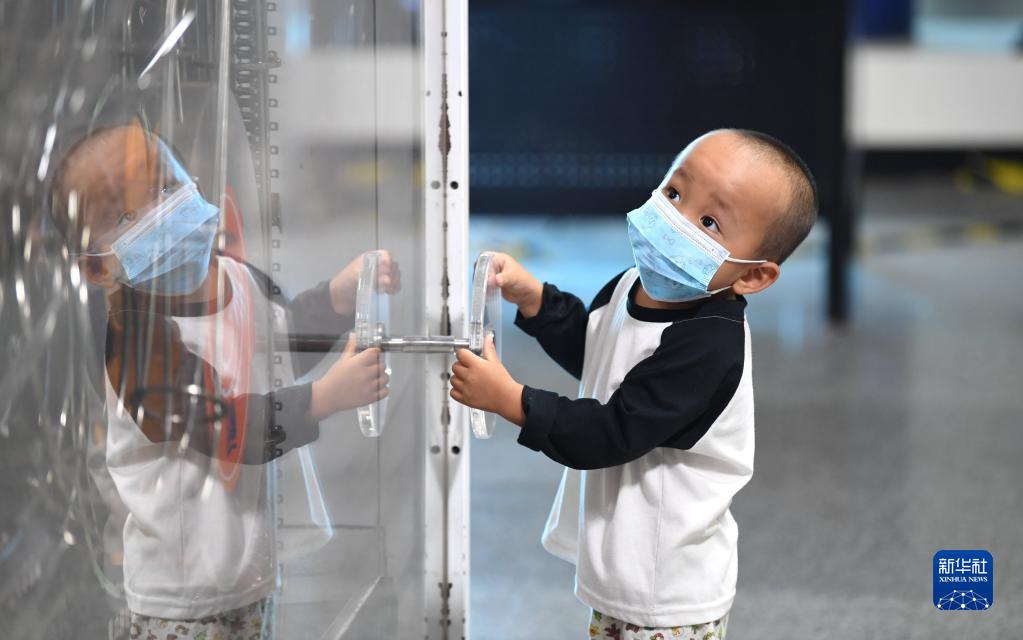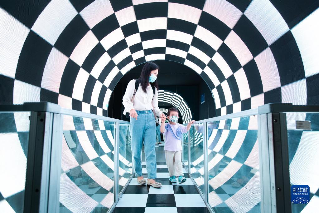 9月15日,家长带着小朋友在南京科技馆参观体验。新华社