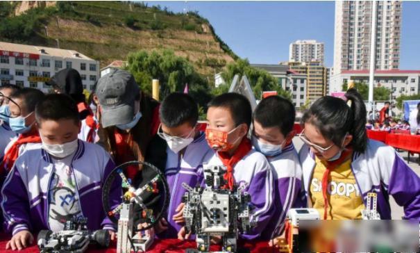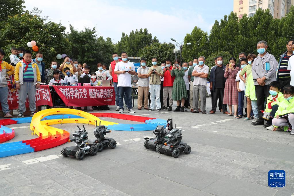 9月7日,2022年中国科普日暨石楼县首届科技节活动启动。图为在机器人编程和航模演示区,看到孩子们在老师的组织带领下,兴奋的体验新课程。潇湘晨报