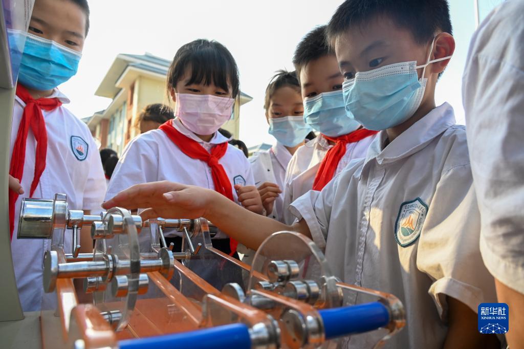 9月15日,在河南省漯河市源汇区科普日宣传活动上,学生们现场操作体验。