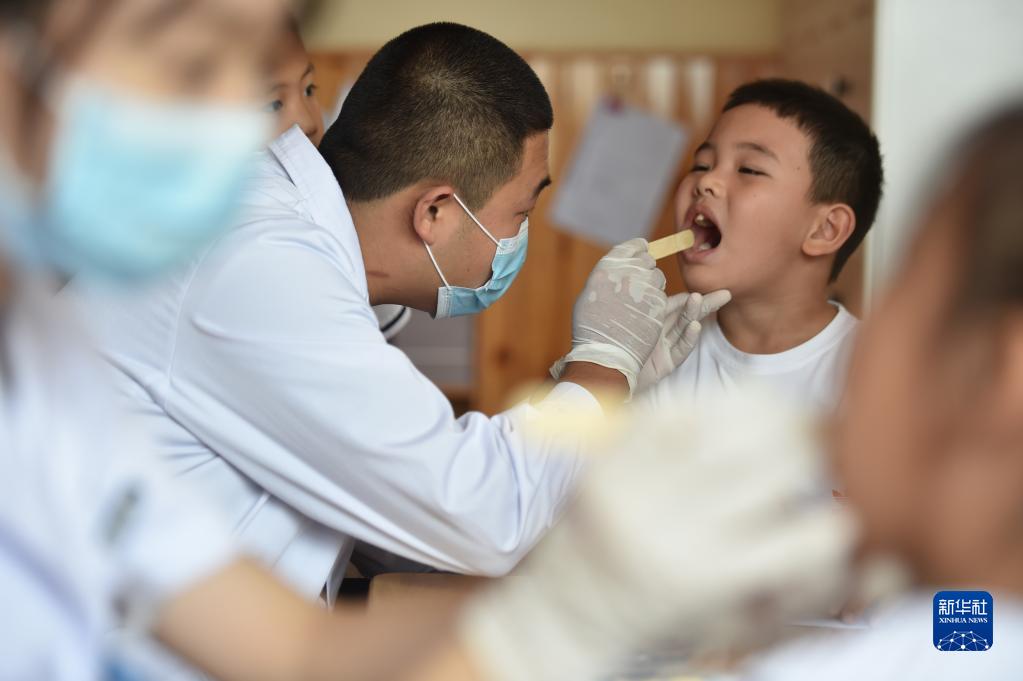 9月19日,河北省石家庄市井陉县医院口腔科医生为小朋友进行牙齿检查。新华社