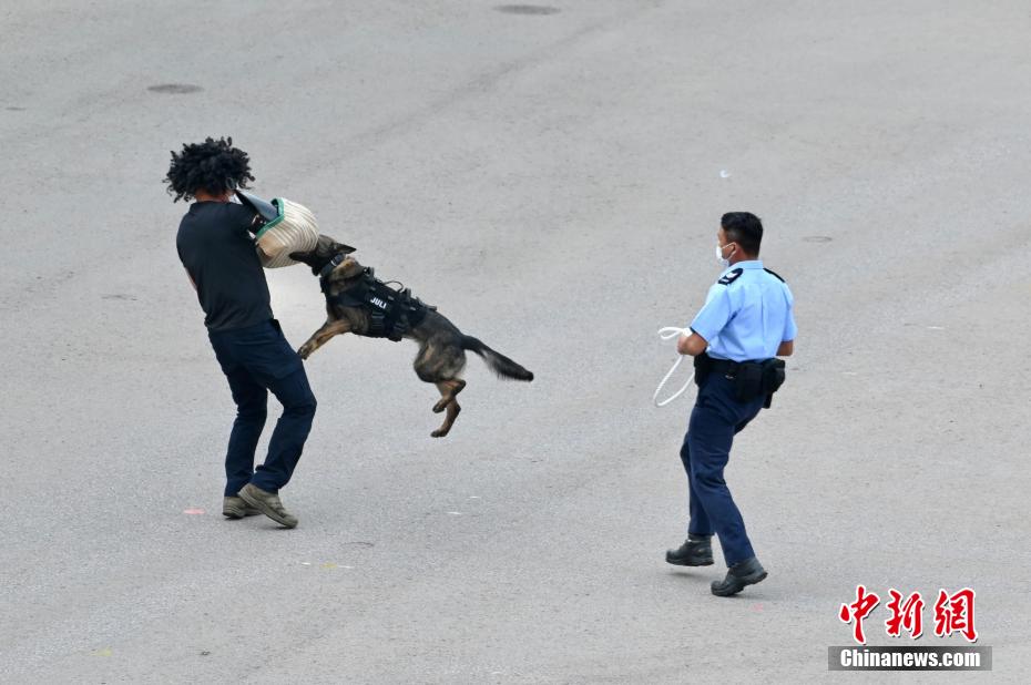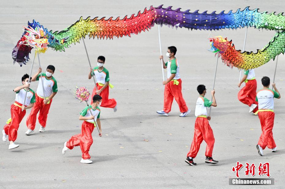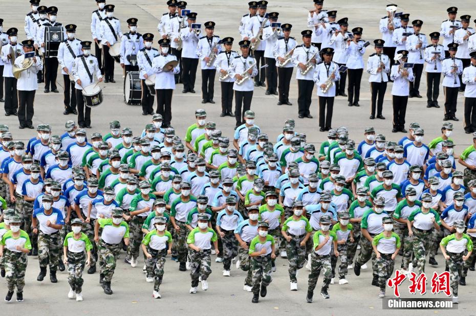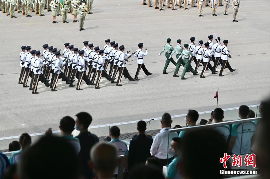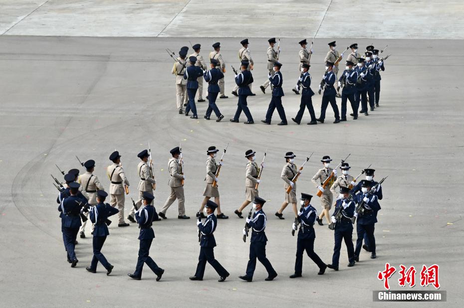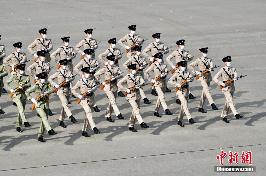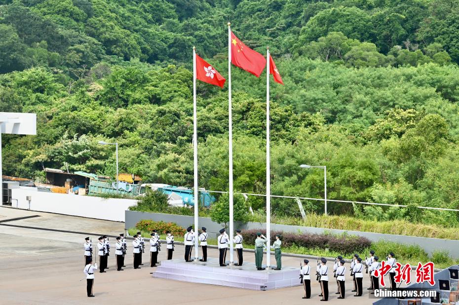 9月24日下午,香港特区政府保安局率领辖下纪律部队和辅助部队,以及9支青少年团队在将军澳消防及救护学院举行“同心·展新”纪律部队暨青少年团体庆中国国庆73周年暨回归25周年步操大汇演,以升旗礼、中式步操表演、青少年团体军体拳表演、龙狮表演等,同贺国庆及庆回归。图为汇演的升旗礼。