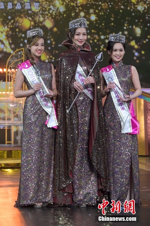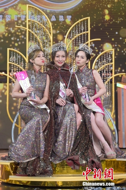 新晋港姐冠军林钰洧(中)、亚军许子萱(左)及季军梁超怡(右)合照。