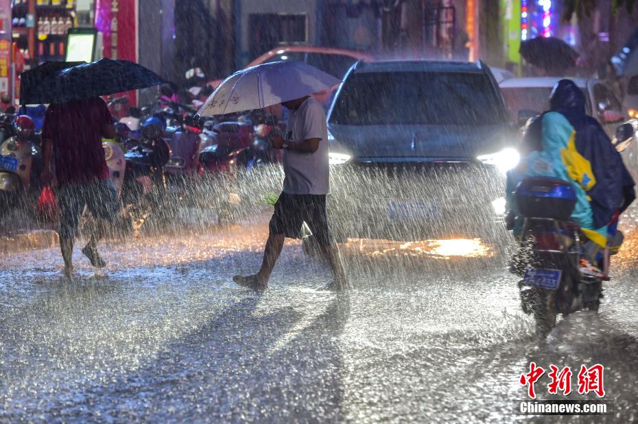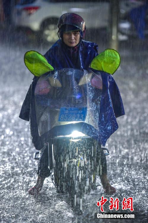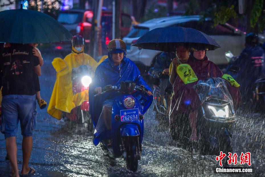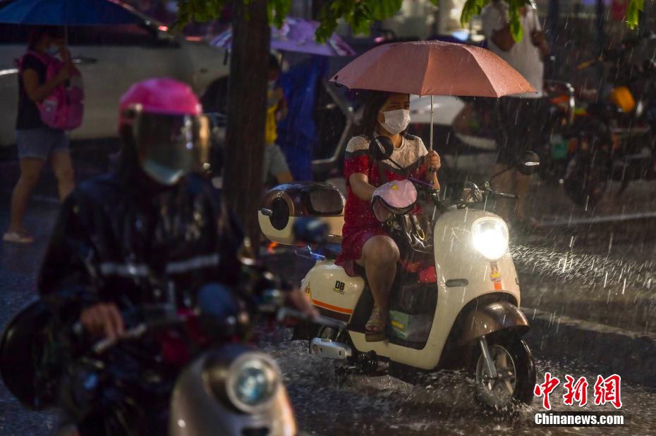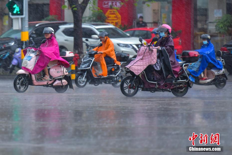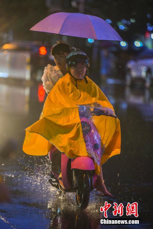 受今年第16号台风“奥鹿”影响,9月27日至28日,“奥鹿”陆续给中国南海大部、海南、广东和广西沿海带来持续性强风雨天气。海南省气象局发布台风、暴雨三级预警。图为27日,海口市民冒雨出行。中新网